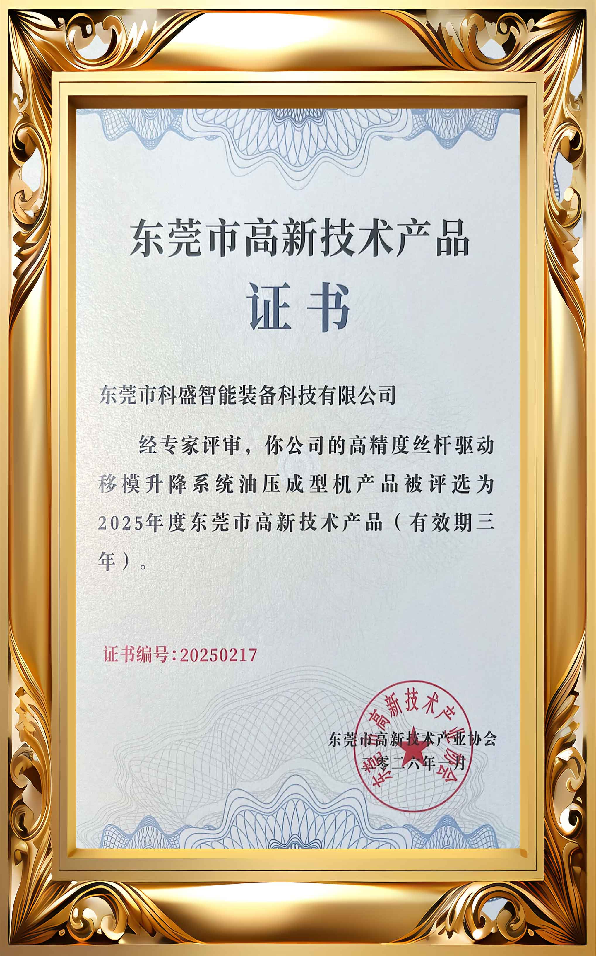 High-tech Product Certificate