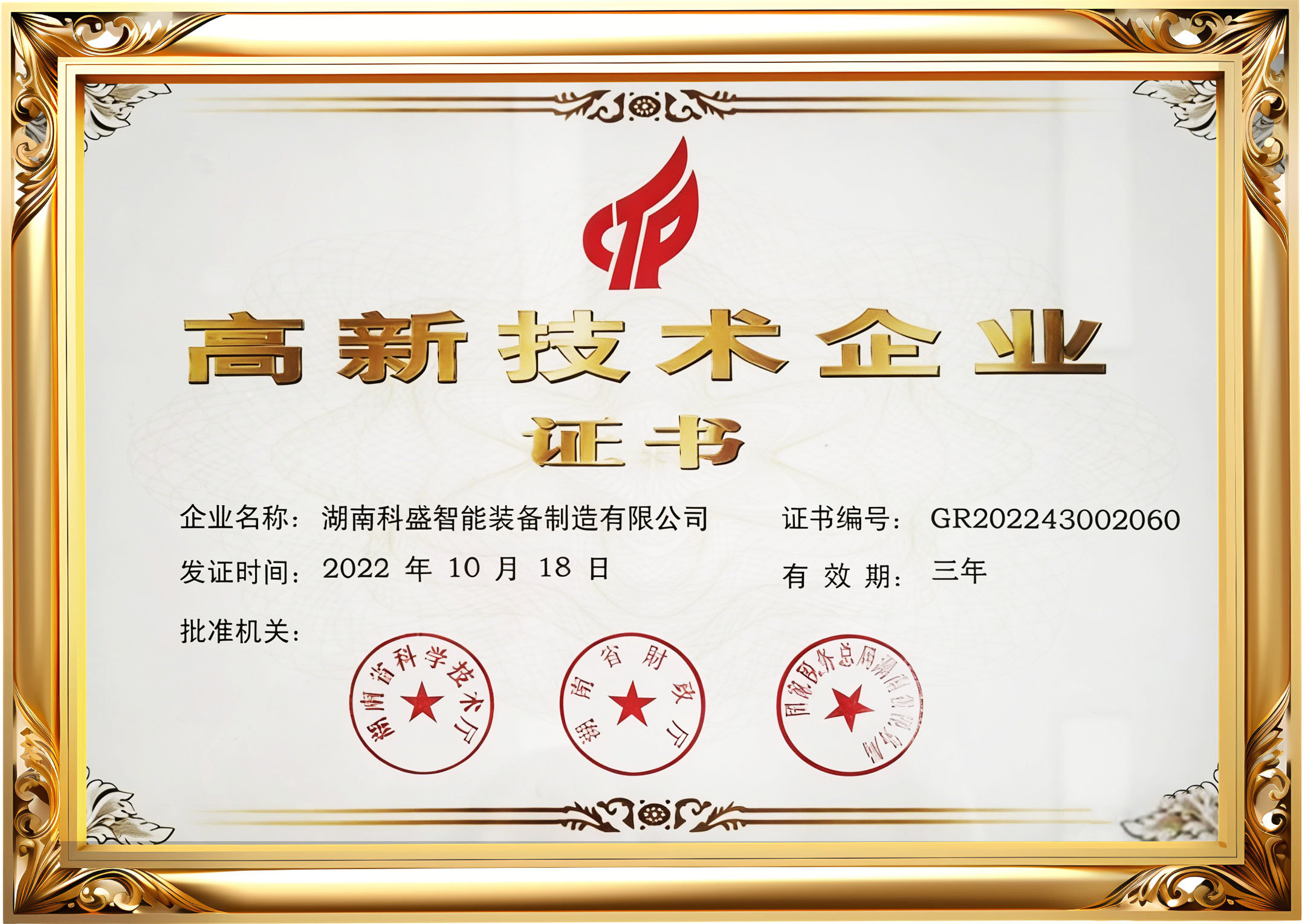 高新技術(shù)企業(yè)證書